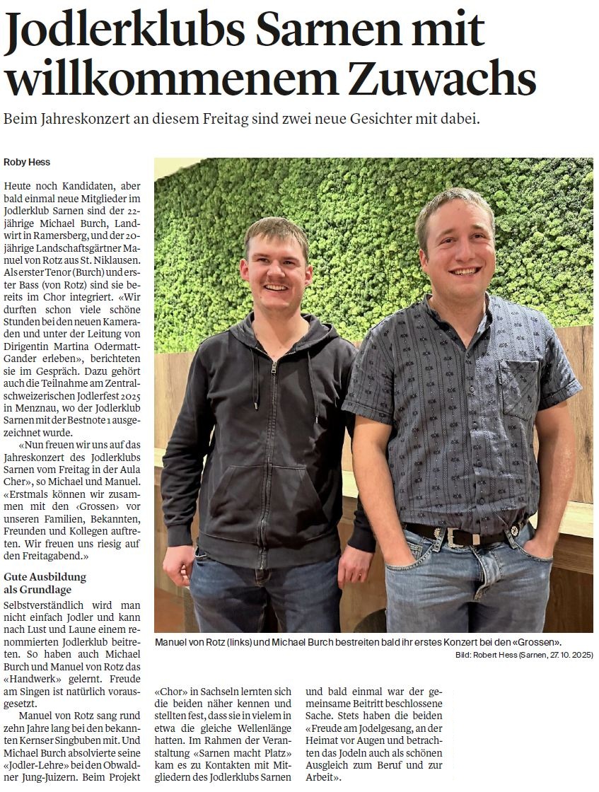 Obwaldner Zeitung vom Donnerstag, 30. Oktober 2025